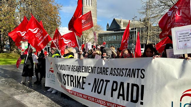 Nearly 50 carers with Plymouth City Council are on strike due to what they say are "disgraceful management practices".